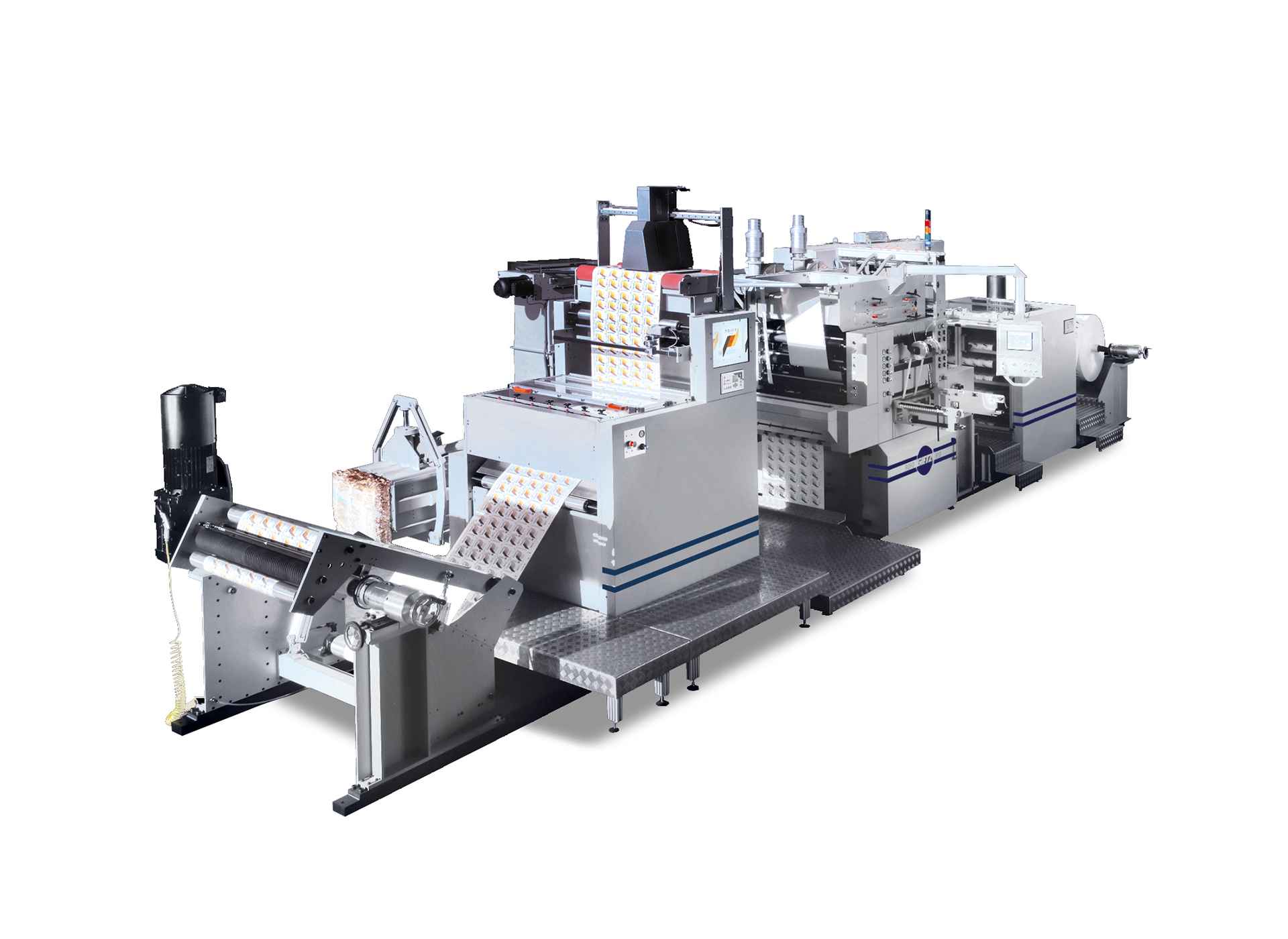The standard machine can be extended by a second stamping station for hot foil stamping and blind embossing. Another possibility is to add a web sheeter or different substrate un- and rewind solutions as well as other machine components.